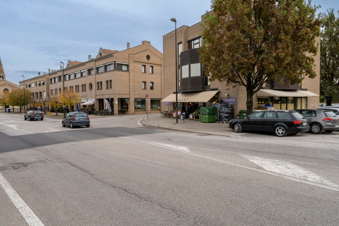Dopo le necessarie demolizione dei fabbricati vetusti e cadenti, su progettazione degli Arch. Barucco – Parenti e Petracco, tutto rivestito a pietre a facciavista ed arricchito di portici, lungo fiume e parcheggi nel cortile interno ed alla confluenza del fiume Lemene e Reghena, ha reso possibile l’insediamento del supermercato Alì, della Sede dell’Associazione Commercianti mandamentale nonché di molte altre attività commerciali, professionali e di prestigiose unità abitative con garages.